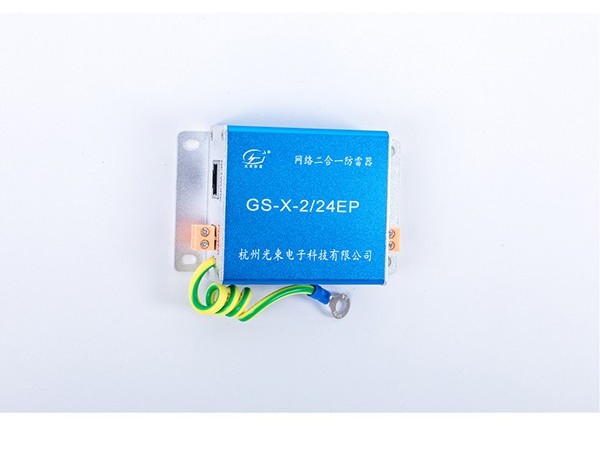 型號:GS-X-2/24EP網絡二合一防雷器:為數字視頻攝像機定制的一款防雷產品,保護攝像機電源、網絡線路免受雷電電磁脈沖、感應過電壓、操作過電壓的影響,廣泛應用于公共治安、交通監控等領域。該系列產品具有集成度高、插損低、殘壓低、方便安裝等特點,具有良好的防雷效果。